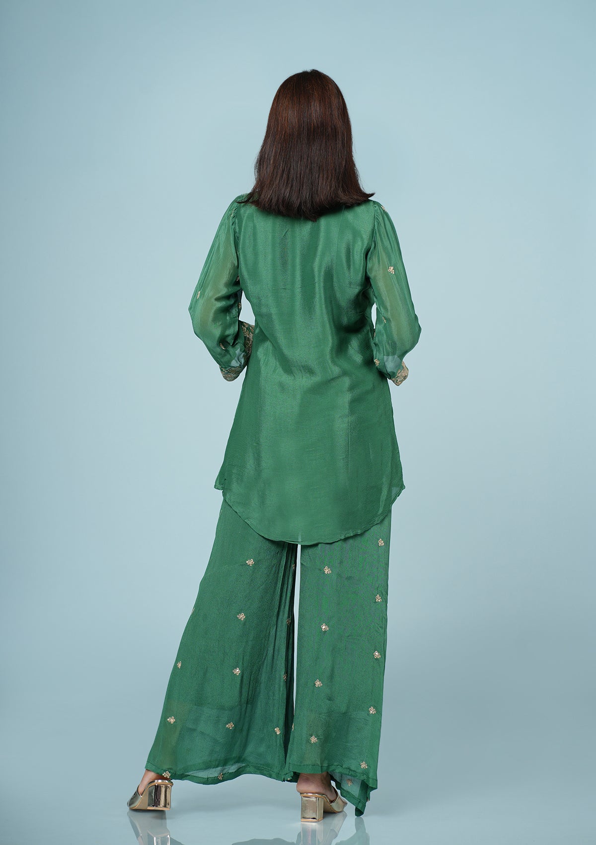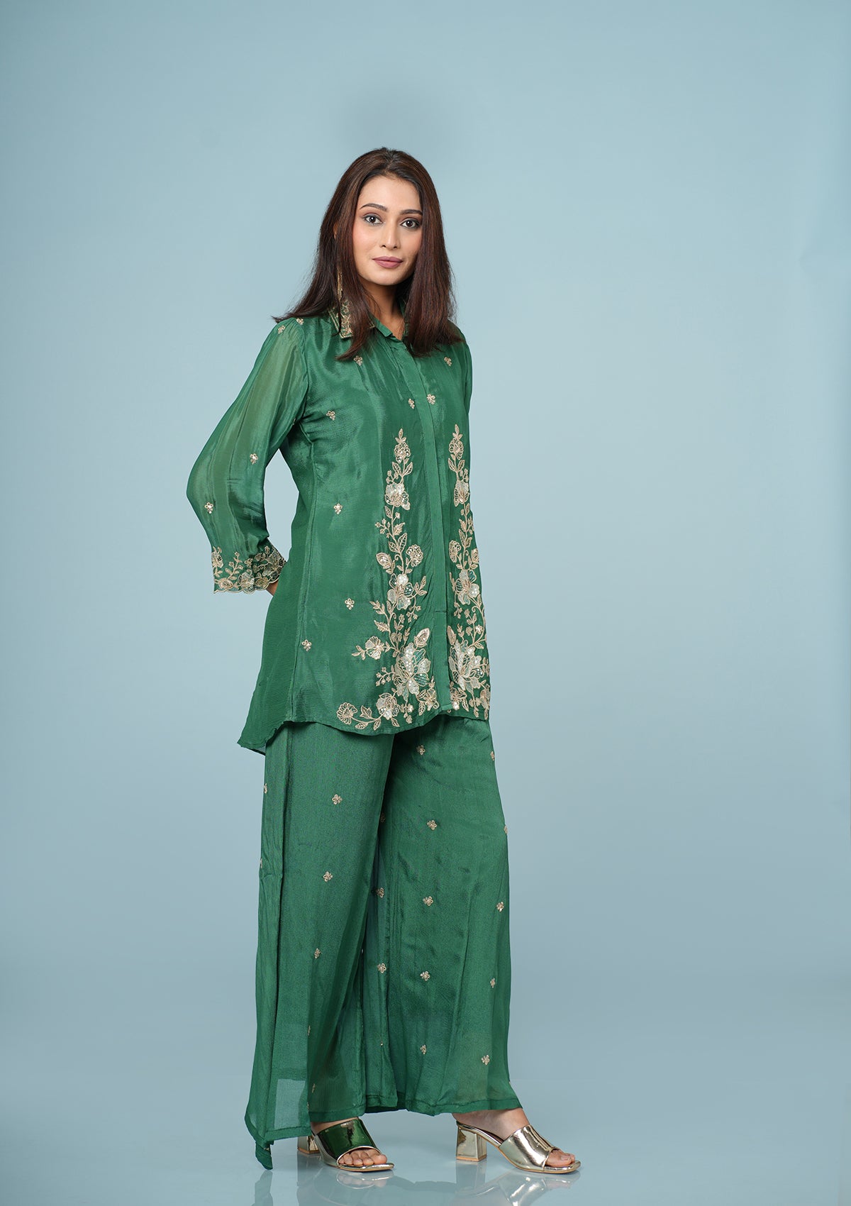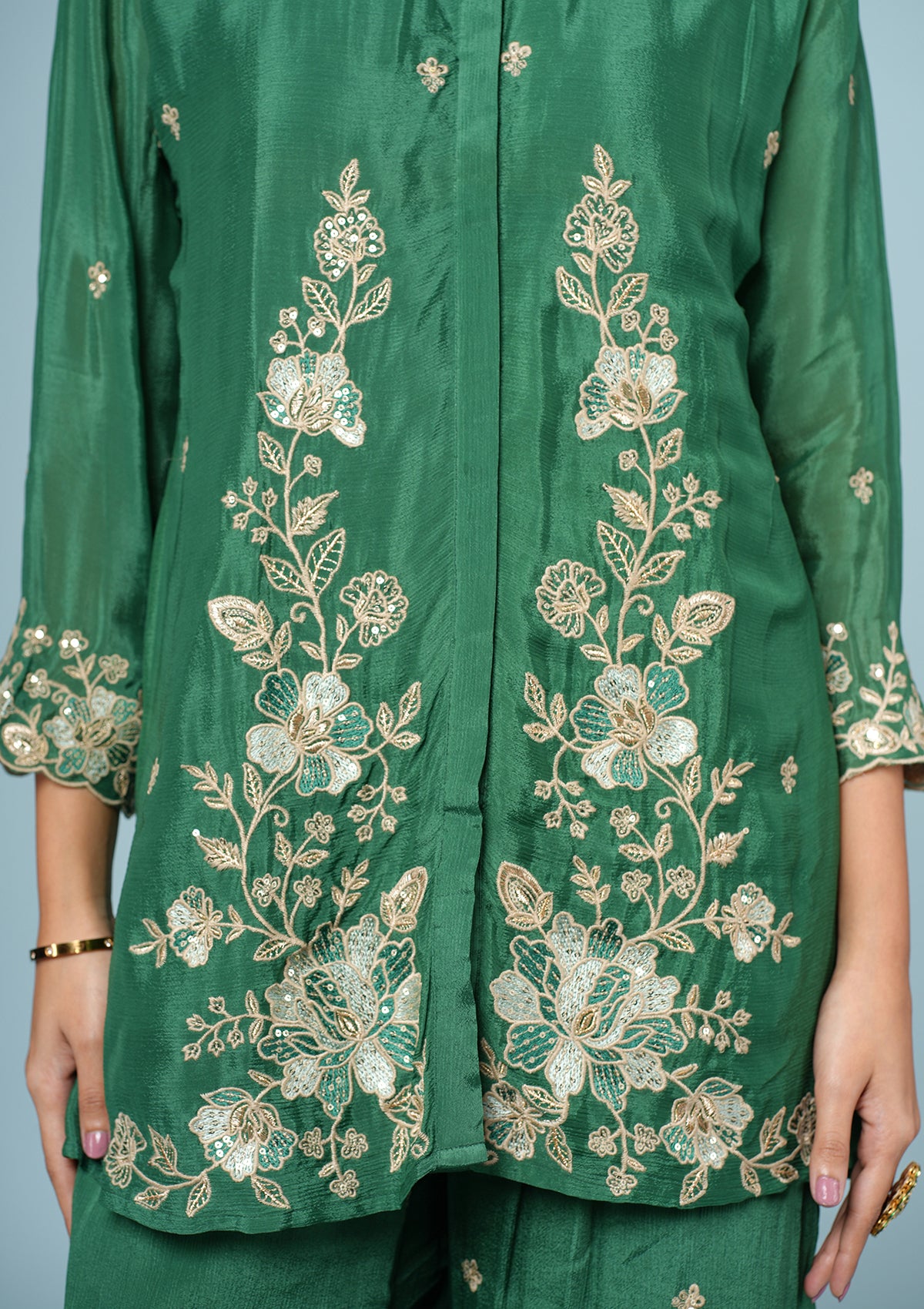 Bottle Green Pure Chinon Embroidered Co-ord Set