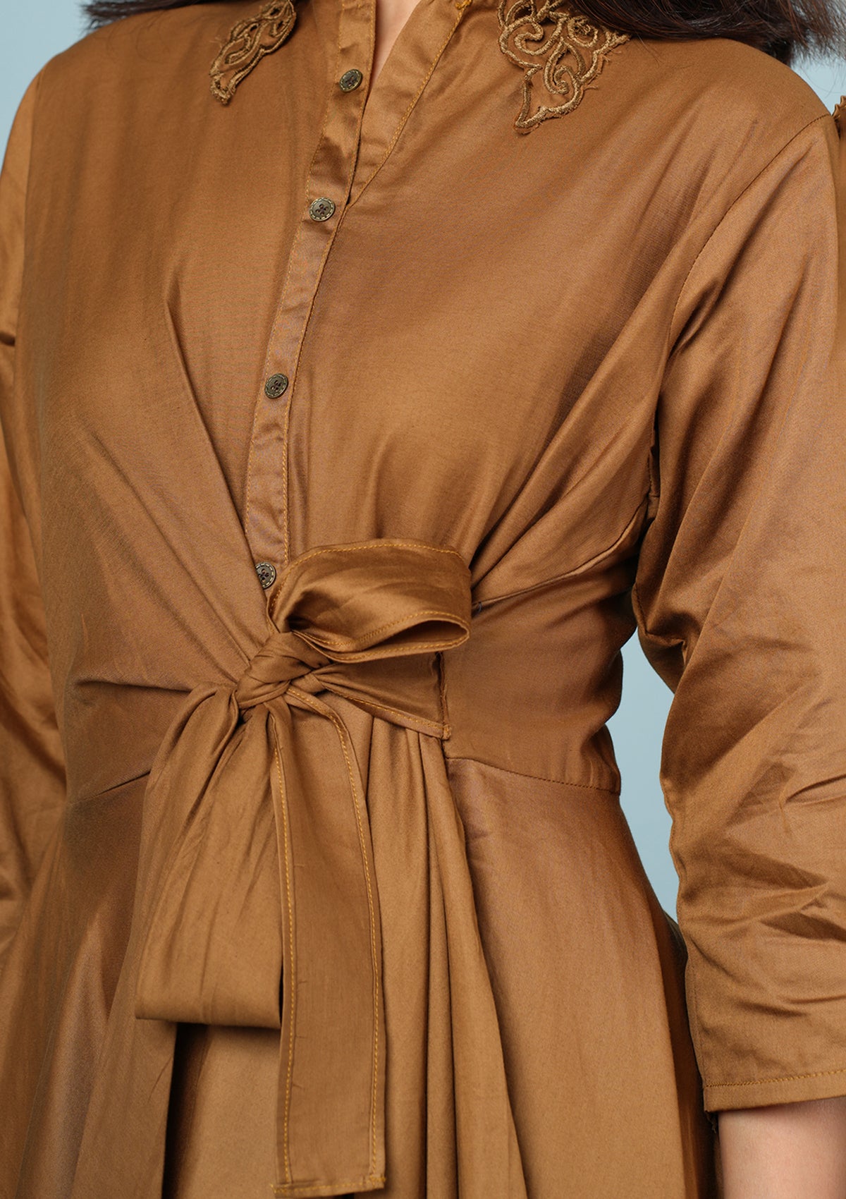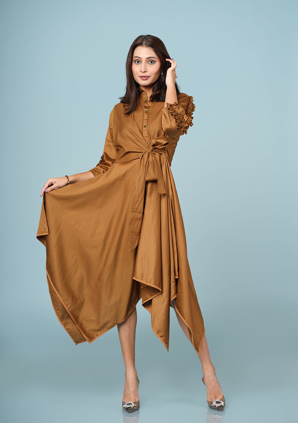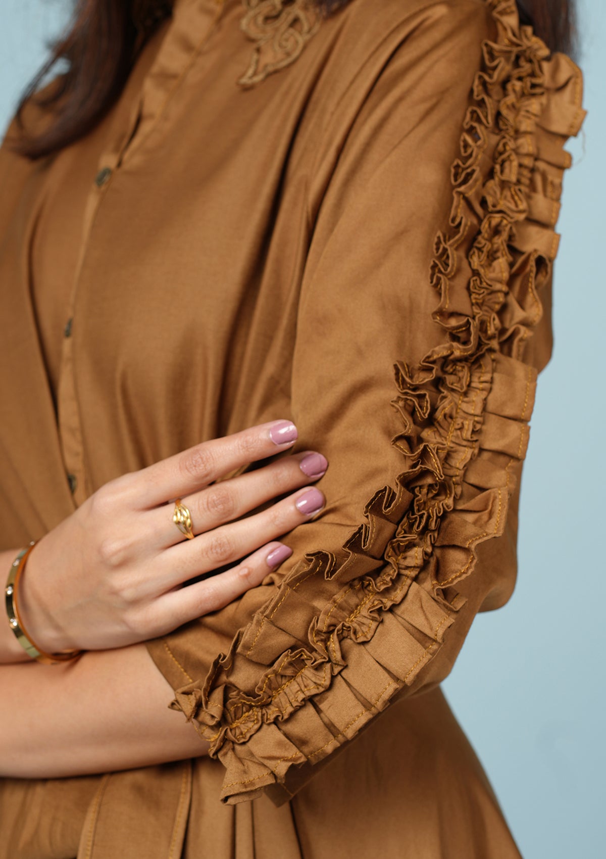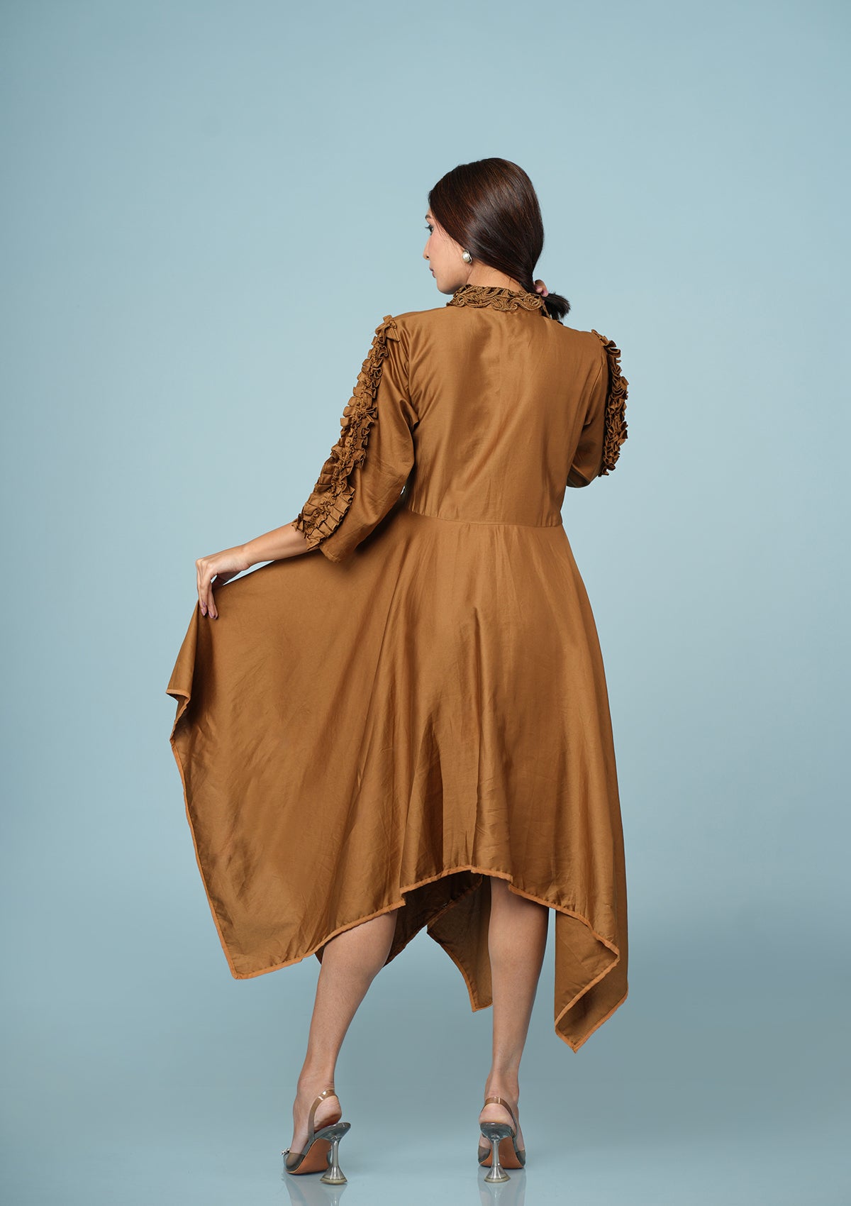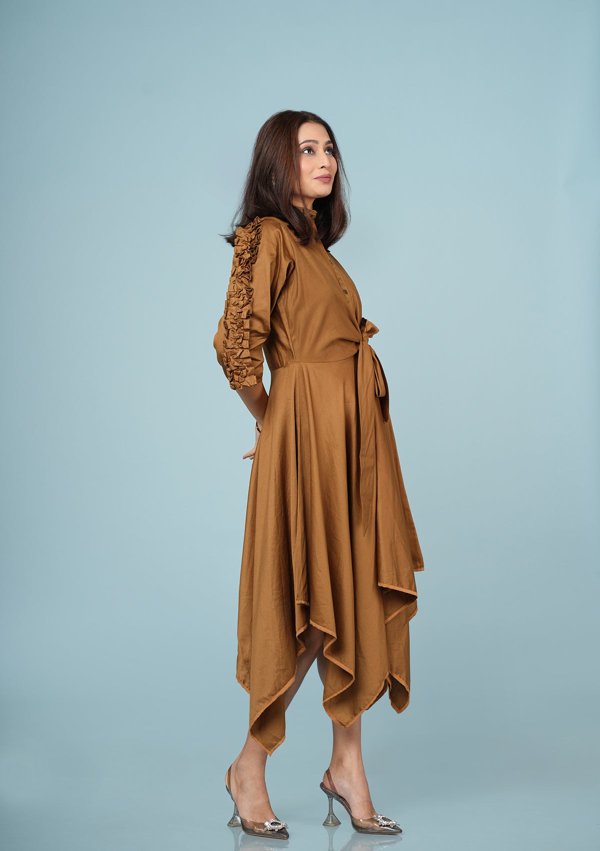 Stylish Pleated Ruffle Dress - Mocha Brown