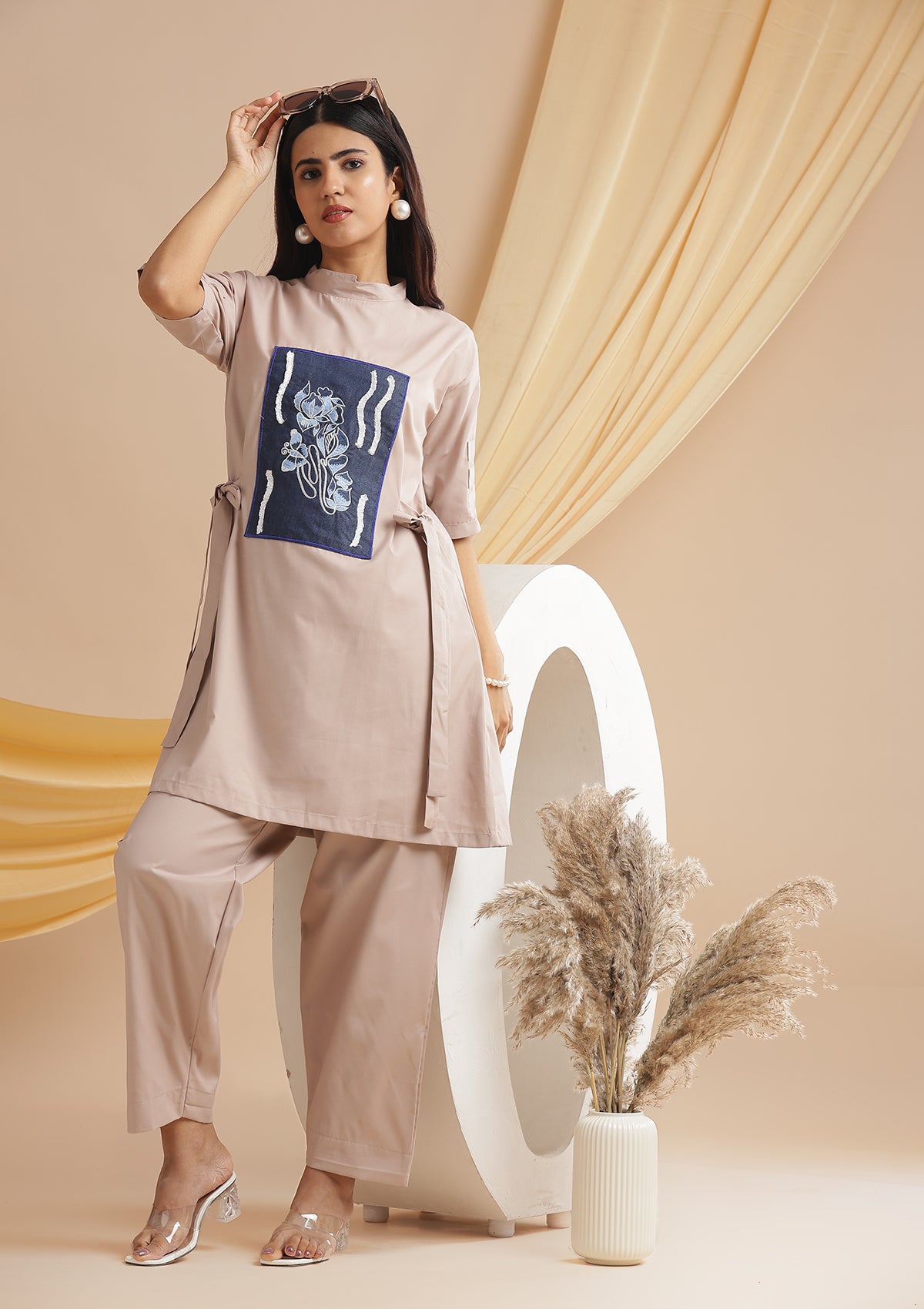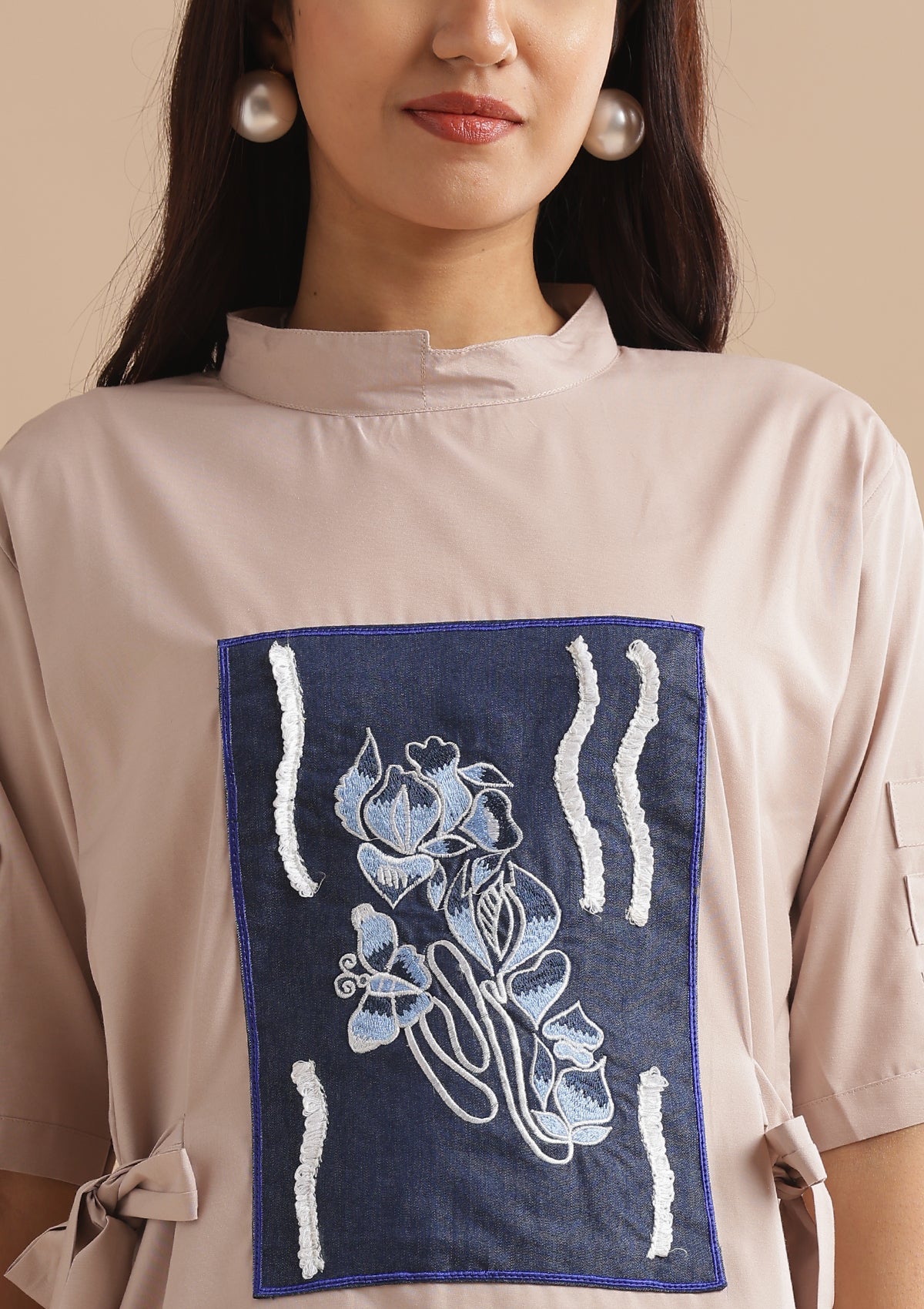 Denim Patchwork With Double Dori Chinese Collar Coordset