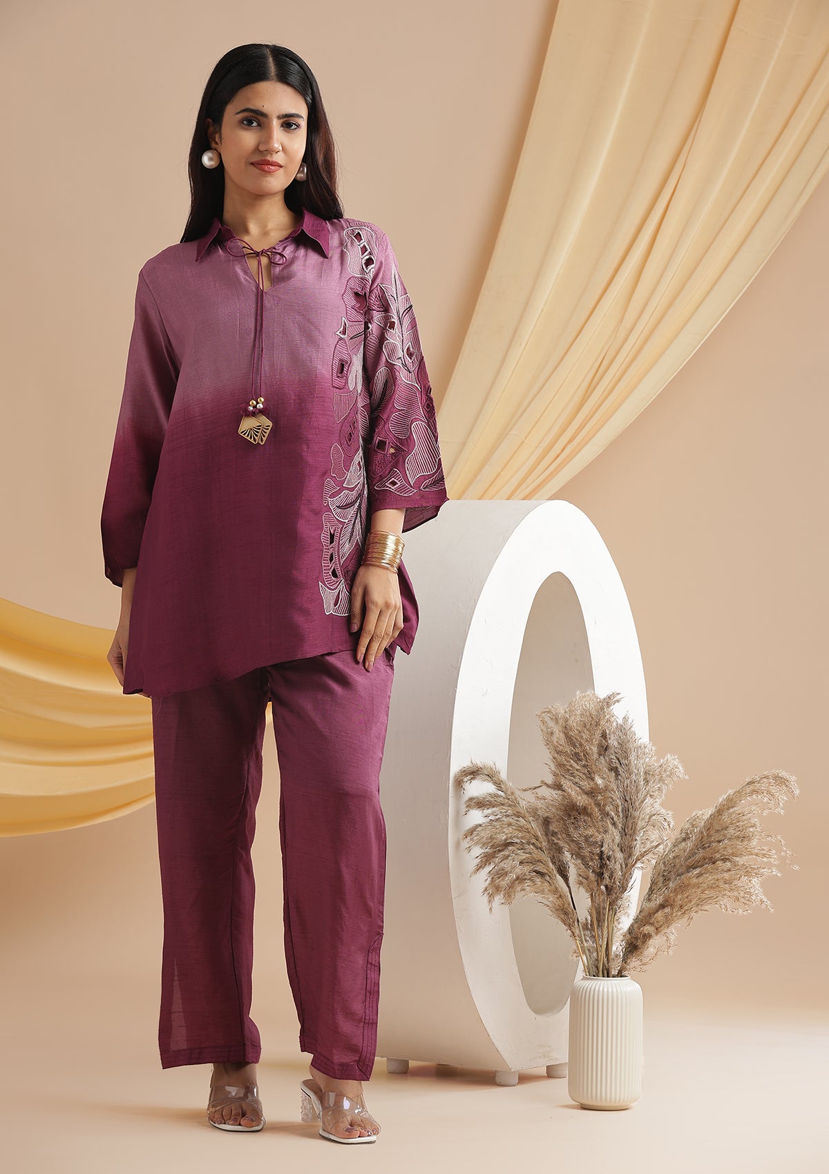 Ombre-effect Co-Ord Set Adorned With Tassels & Thread Detailing - Purple