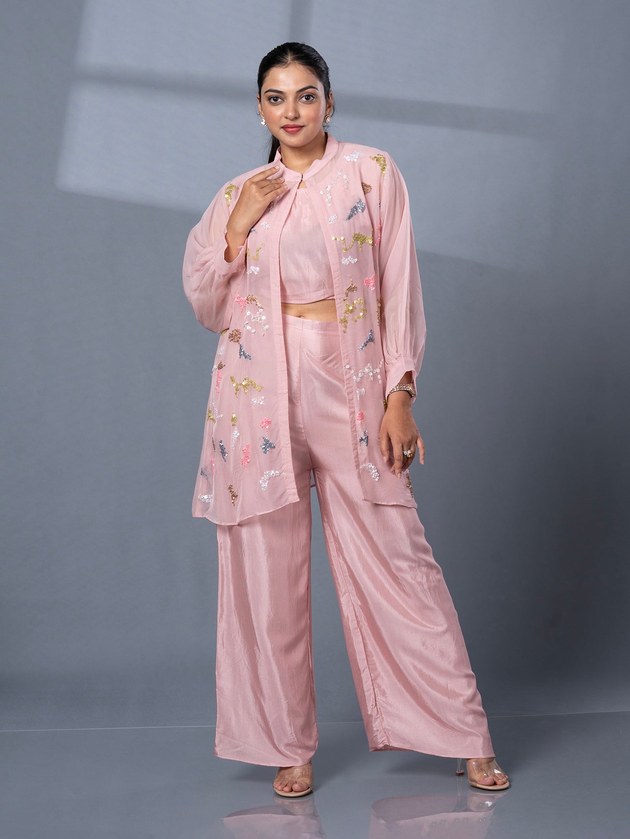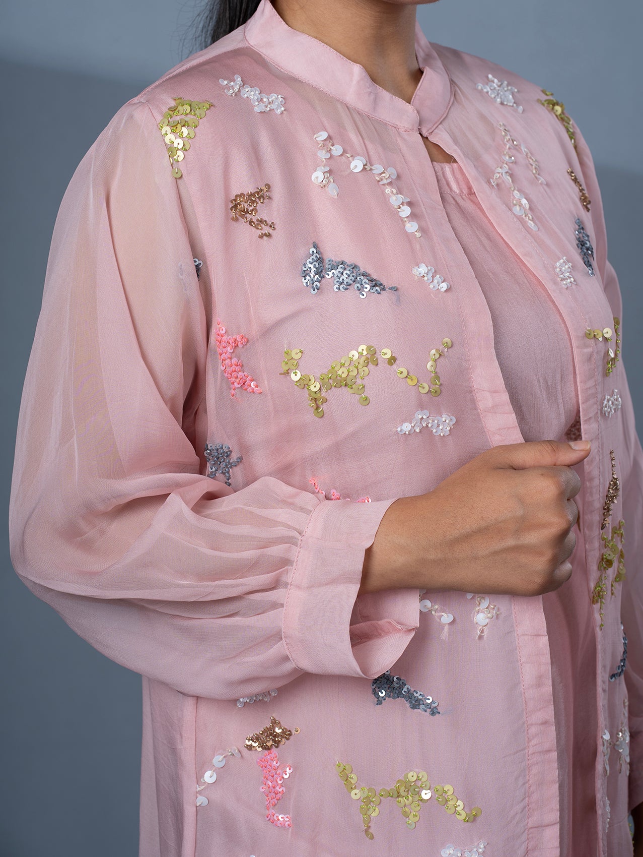 Multi Colour Sequin Work Organza Jacket & Pant (3 Piece set)