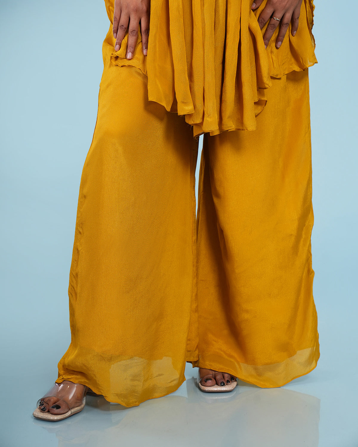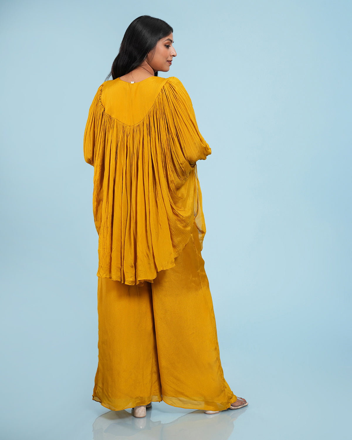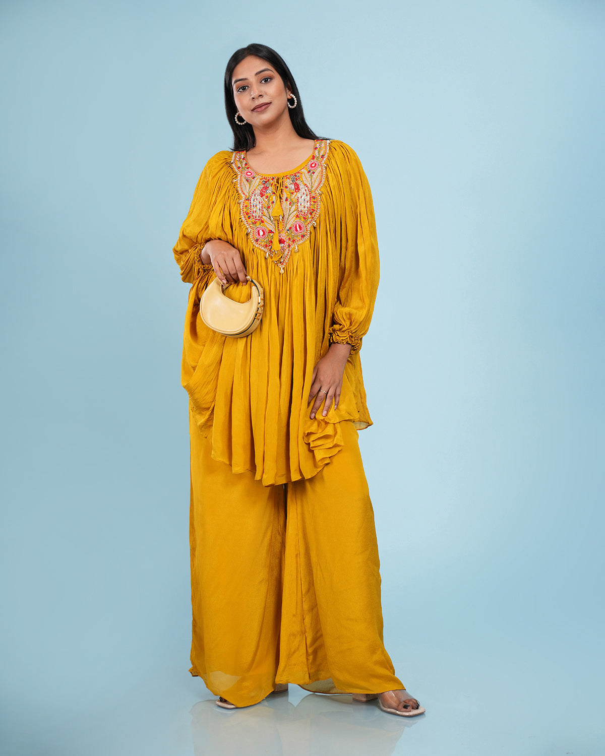 Mustard Hand Embroidered Pleated Co-Ord Set