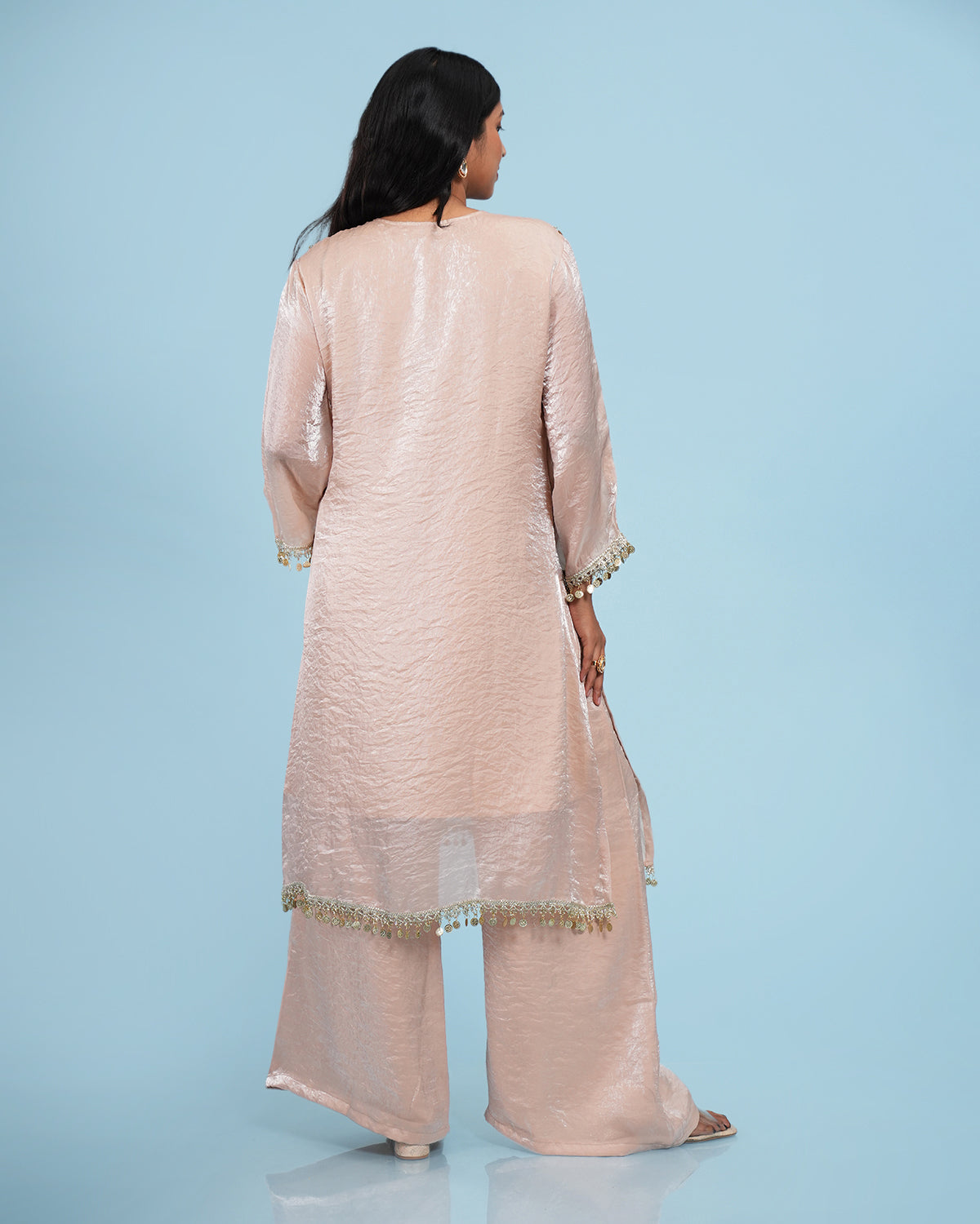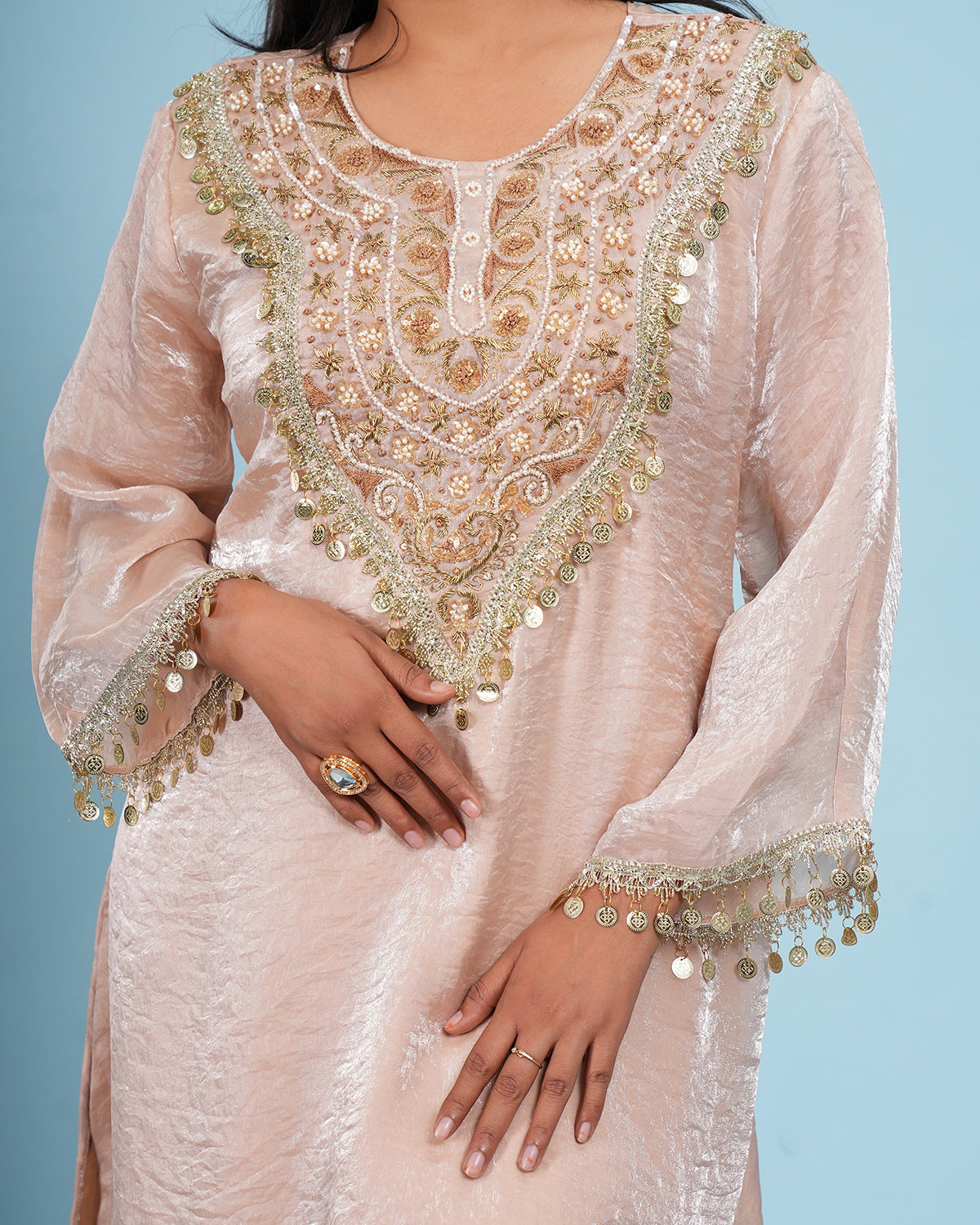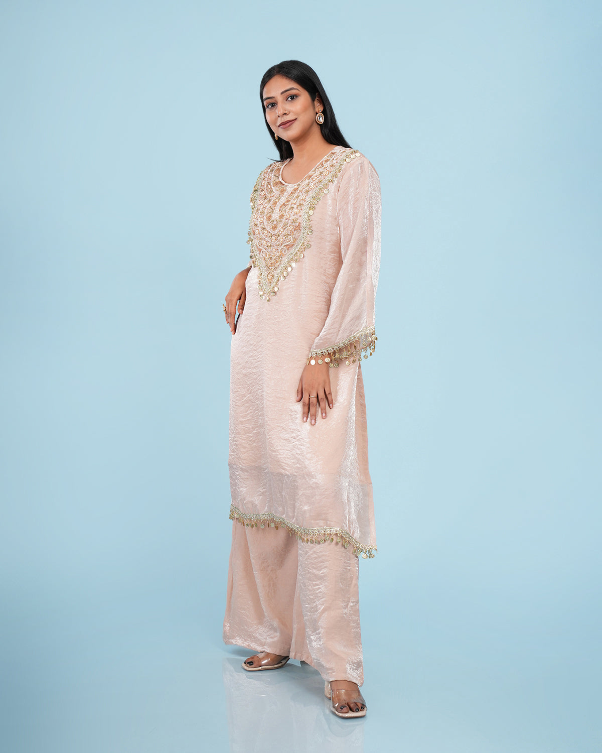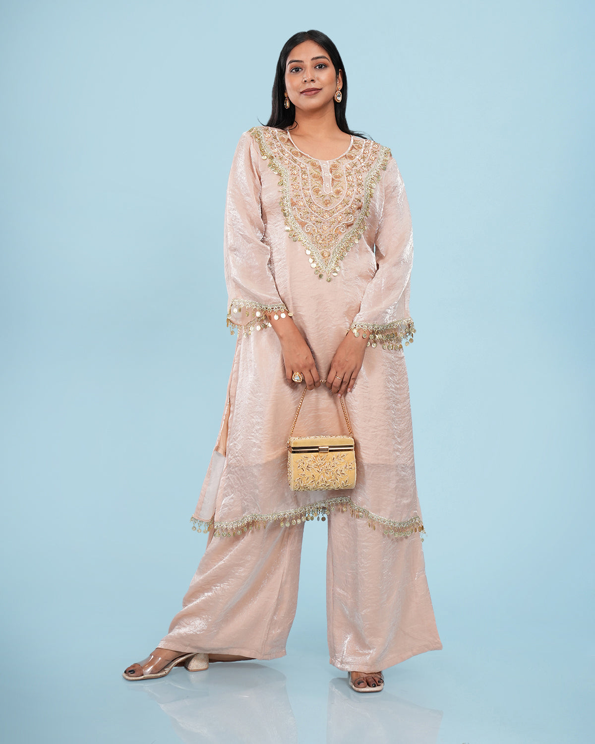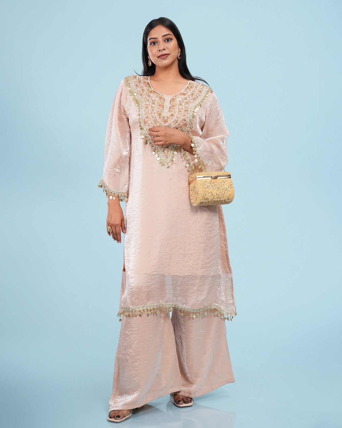 Organza Tissue Gold Embroidered A Line Kurta Set