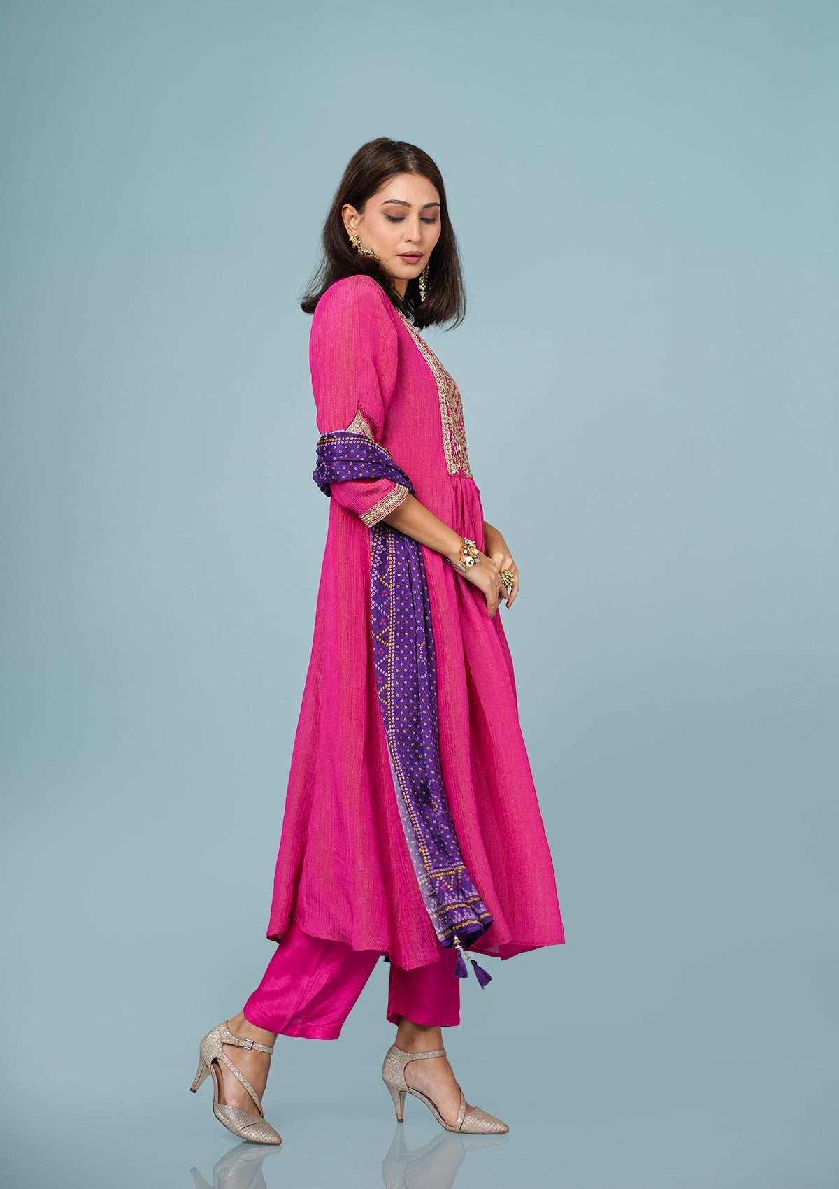 Color: Kurti & Pant- Rani Pink, Dupatta- Purple