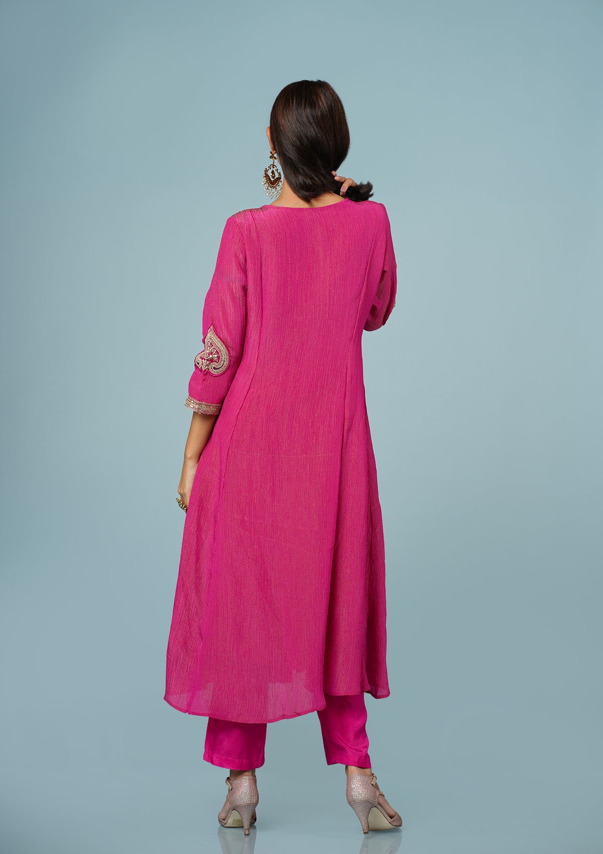 Paired with a straight pant, this ensemble beautifully balances grace and comfort - perfect for the festive season, family gatherings, or traditional celebrations.