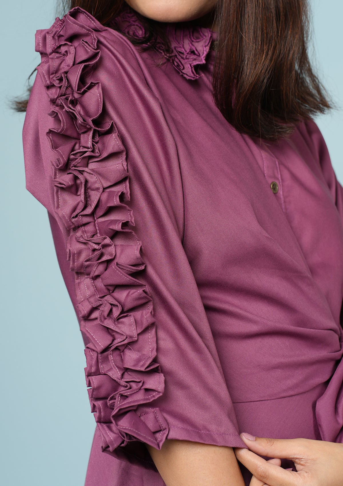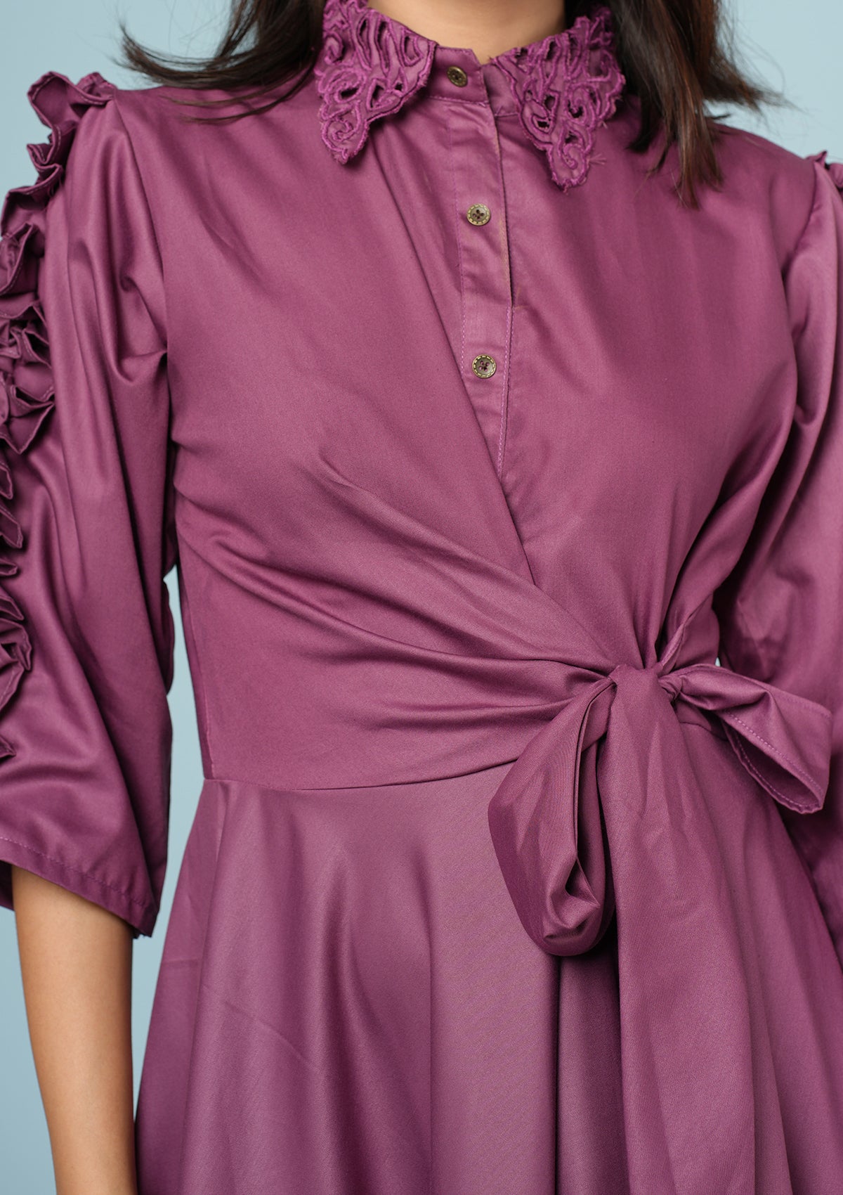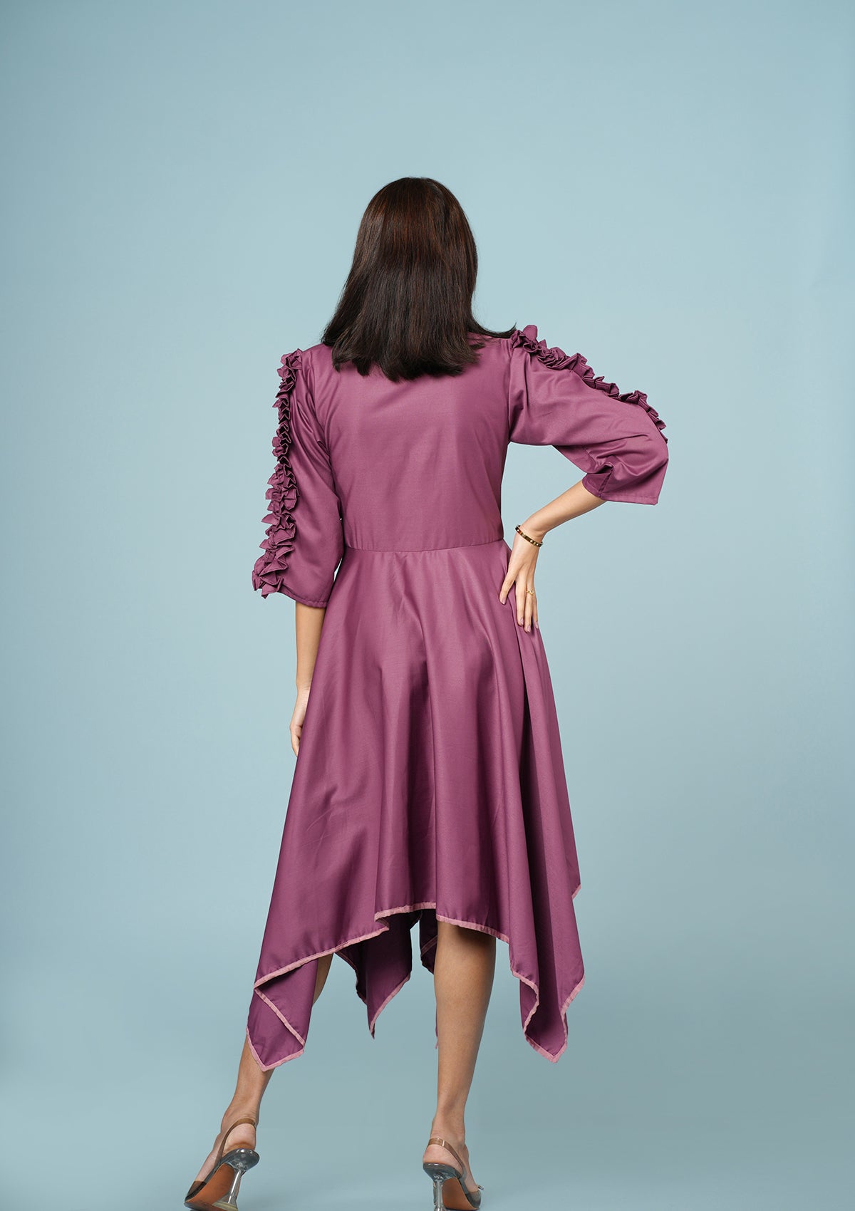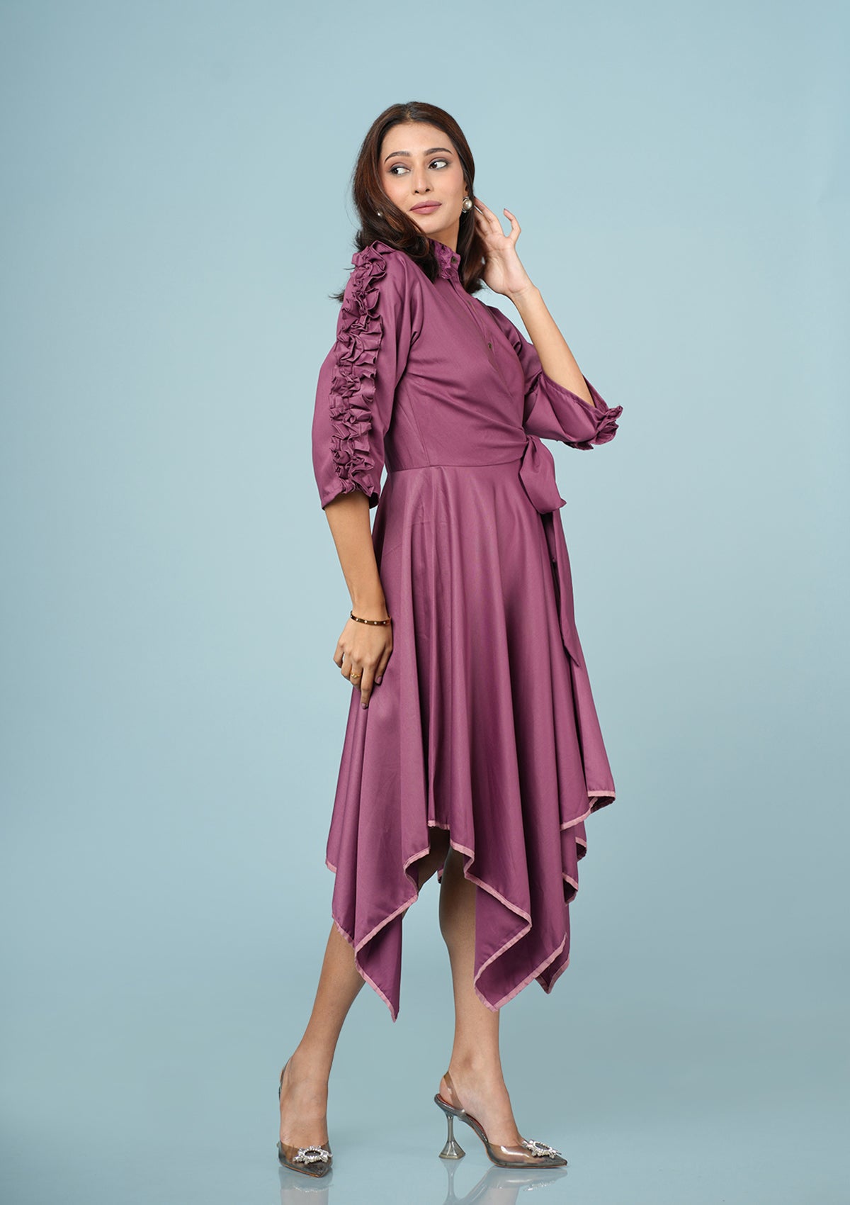 Stylish Pleated Ruffle Dress - Magenta